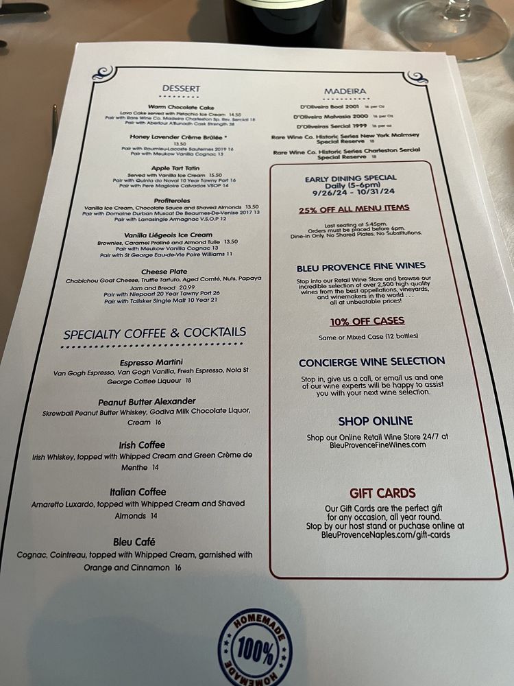 Don't skip dessert— options like the Warm Chocolate Lava Cake and Apple Tarte Tatin provide the perfect sweet finish. Tailored for both intimate dinners and larger gatherings, Bleu Provence is an experience to savor, promising a delightful blend of atmosphere, service, and extraordinary flavors.